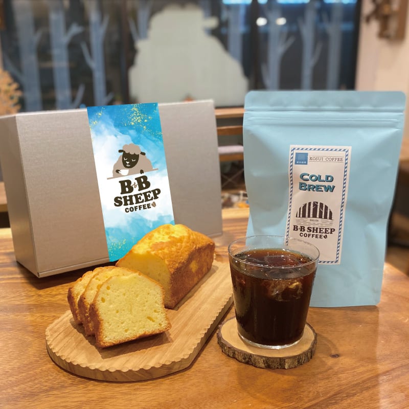 スッキリとした後味で大人気の「水出し湖水コーヒー」と、BB 摩周店に併設した「発酵仮面本舗」から、北海道産の食材と米麹を使用したしっとりバターケーキをご用意いたしました。冷やして食べても絶品!バターケーキは丸ごと1本でのお届けです。オプションにて、フルーツケーキへの変更も可能です!